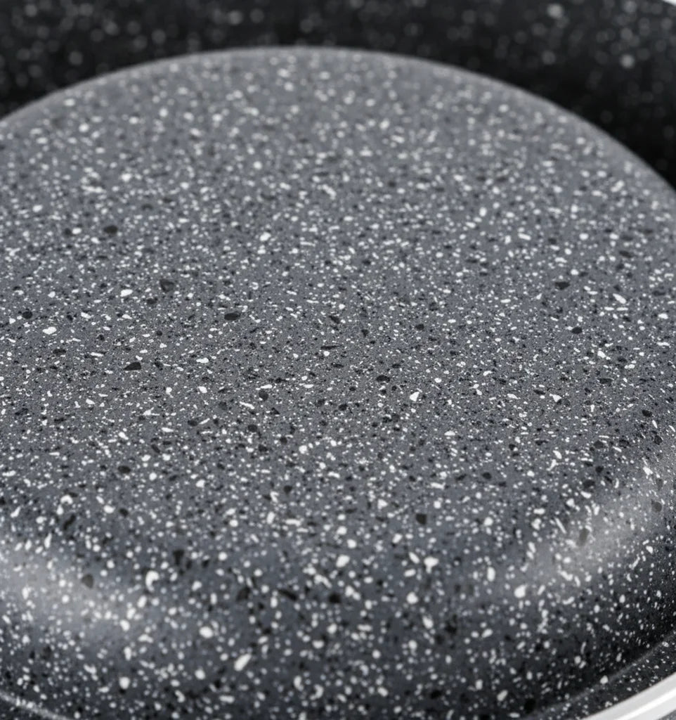 While incredibly stylish, the granite stone design also contributes to the cookware's durability and even heat distribution. It's a perfect blend of aesthetic appeal and functional excellence, enhancing your cooking experience.